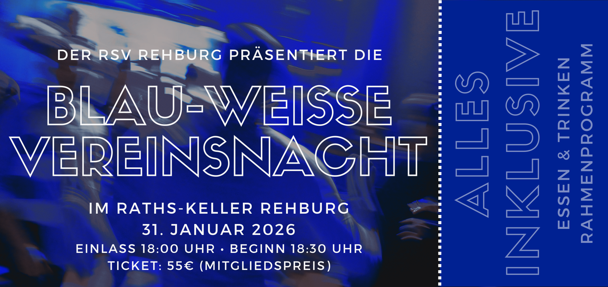 Mit diesem Ticket erhältst du als Mitglied vergünstigt Zugang zu unserer exklusiven Vereinsveranstaltung mit Buffet, Getränkeflat, Livemusik, DJ und vielen weiteren Highlights im Raths-Keller Rehburg am 31.01.2026